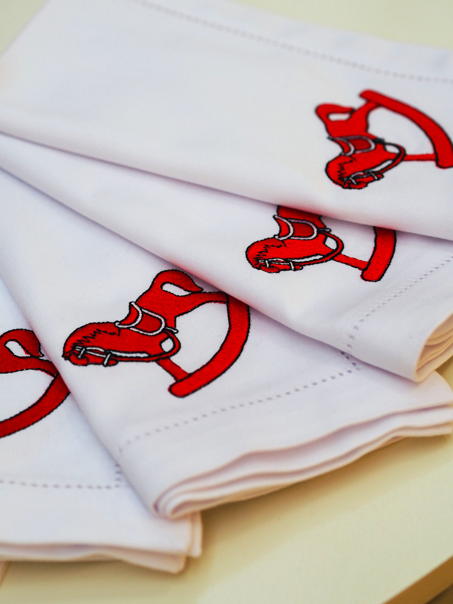 - Салфетка с вышивкой, размер 45*45 см, цвет салфетки: белый, цвет вышивки: красный. - 2 шт.